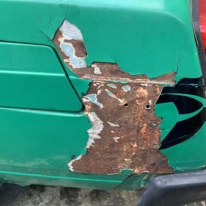 Была облита прежним собственником. Сзади была чуть подшпаклевана - отвалилась с краской.
