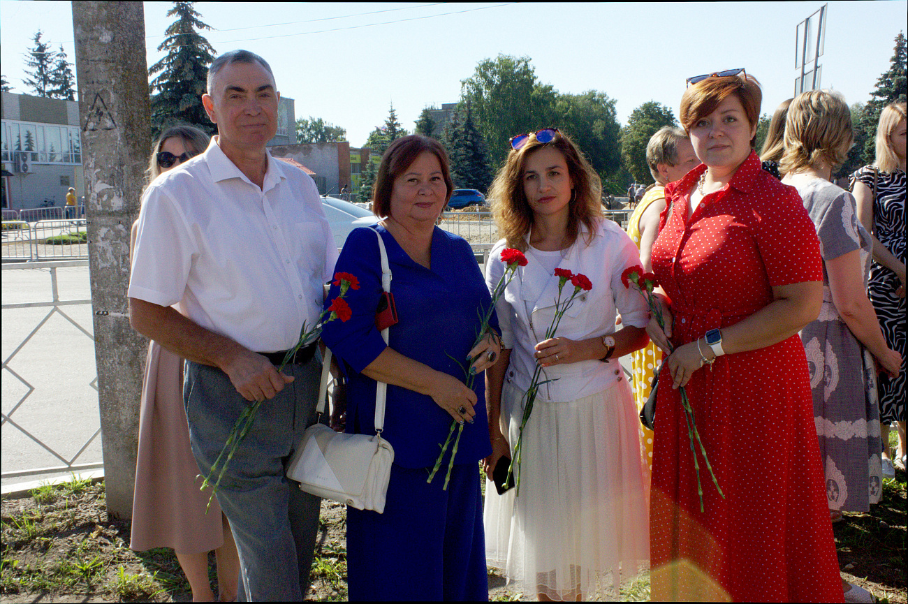 Память павших бойцов почтили минутой молчания и возложением цветов. 15 августа мероприятия продолжились у Стеллы «Послание потомкам», где в торжественной обстановке копию Знамени Победы водрузили на историческое здание, сохранившееся со времен освобождения г. Карачева.
