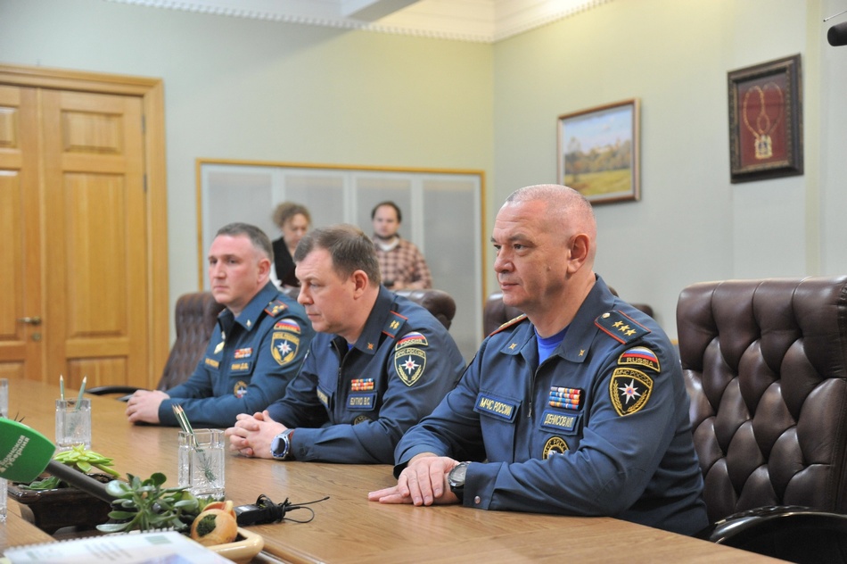 Министр РФ по делам гражданской обороны, чрезвычайным ситуациям и ликвидации последствий стихийных бедствий генерал-полковник внутренней службы Илья Денисов и начальник Академии ГПС МЧС России генерал-лейтенант внутренней службы Вячеслав Бутко прибыли в Брянскую область.