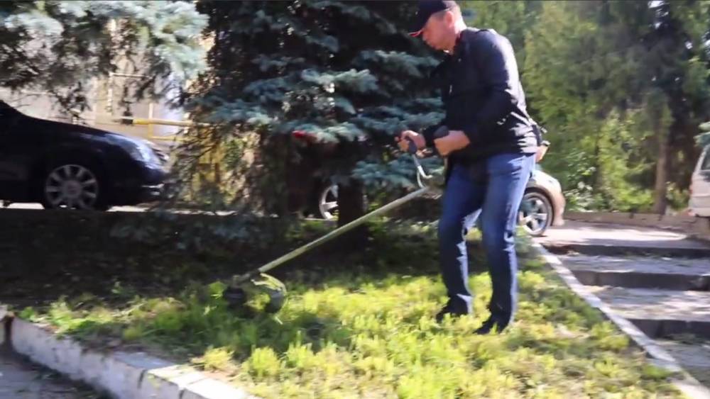 Надежда имеет ввиду видео, которое запечатлело, как Сергей Антошин пытается косить траву в самом центре Брянска − возле отдела полиции Советского района.