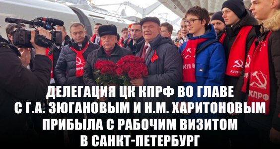 В понедельник, 29 января, Председатель ЦК КПРФ Г. А. Зюганов и кандидат на пост Президента, член Президиума ЦК КПРФ Н.М. Харитонов прибыли с рабочим визитом в Санкт-Петербург. В поездке также принимают участие первый заместитель Председателя ЦК КПРФ Ю.В. Афонин, секретарь ЦК КПРФ А.А. Ющенко, член ЦК КПРФ М.С. Музаев.