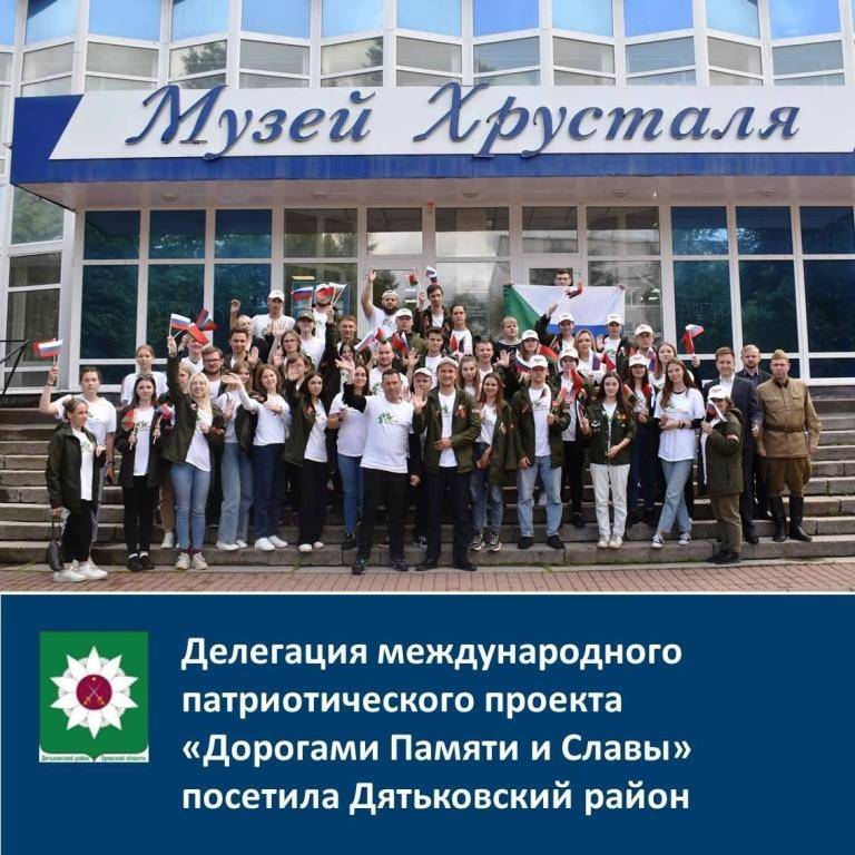В рамках международного патриотического проекта «Дорогами Памяти и Славы» Дятьковский район посетила делегация молодежи из Могилевской, Смоленской, Брянской, Ленинградской, Астраханской областей и Хабаровского края.