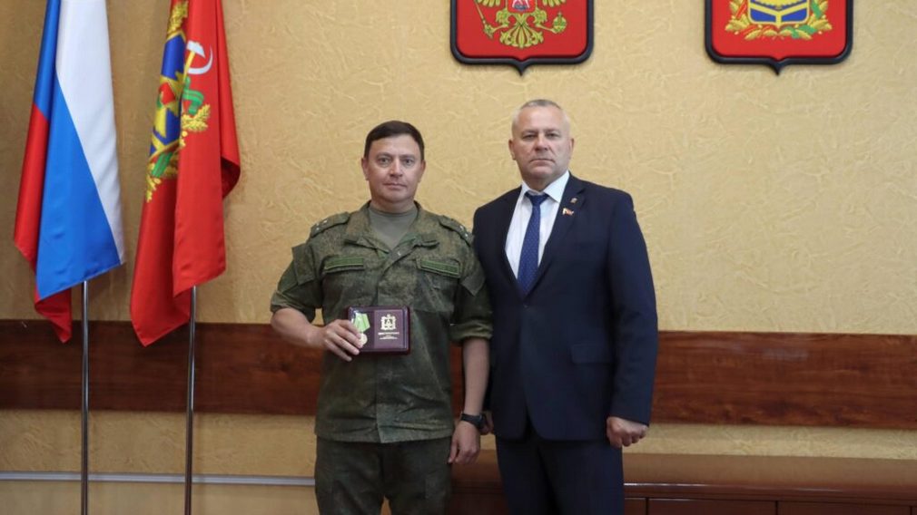 Комиссару Урмансову спикер Брянской облдумы Валентин Суббот вручил памятную медаль