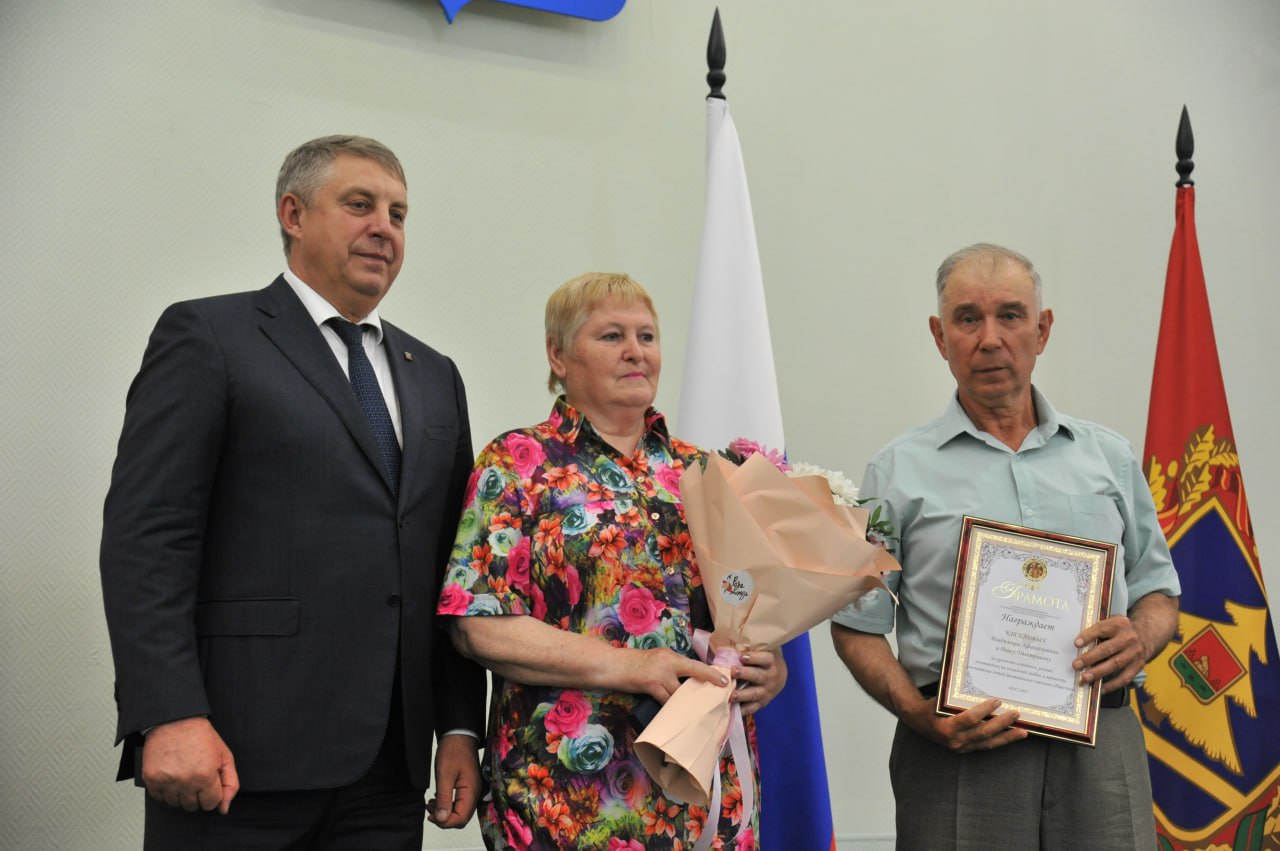 В этом году 58 семей получили медали «За любовь и верность». Александр Богомаз лично поздравил этих семей и выразил признательность за их преданность друг другу.