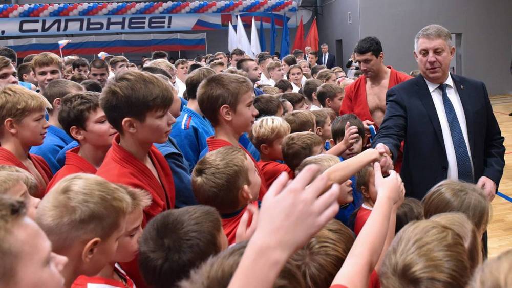 Глава области напомнил, что за последние годы в Брянской области построили 175 спортивных объектов, в том числе 82 − крупных. Большая часть этих сооружений построена в районах: 12 ФОКов, из которых 7 с бассейнами, 9 ледовых дворцов, 16 стадионов с искусственными футбольными полями, 45 комплексов открытого типа.