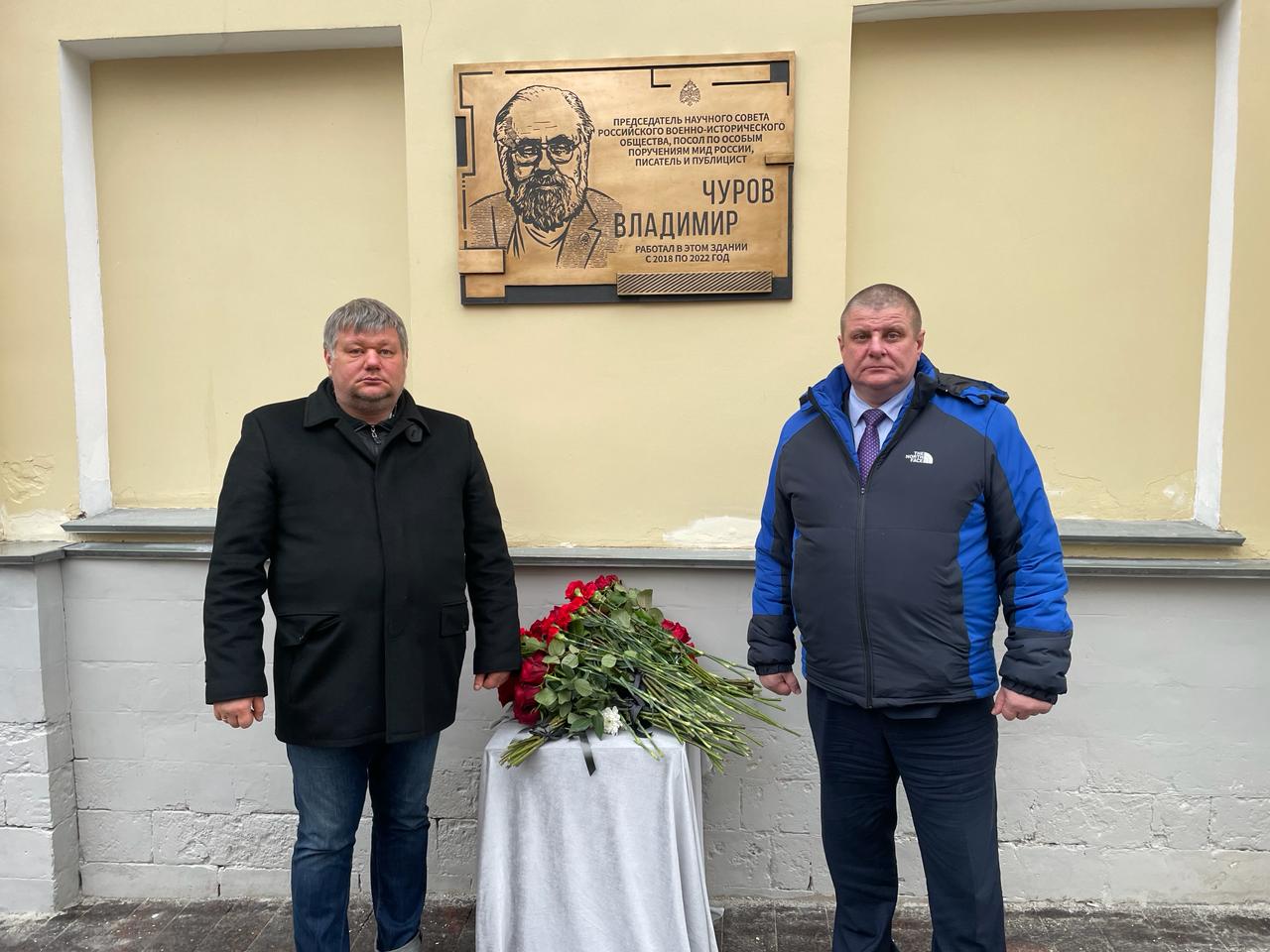Открытие мемориальной доски В.Е. Чурову на здании Российского военно-исторического общества