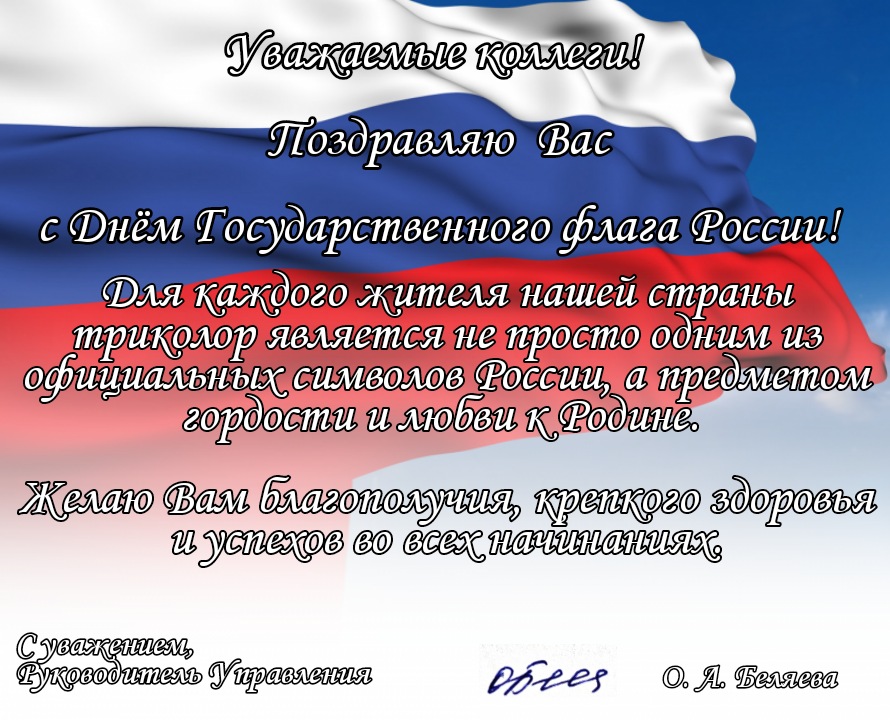 Поздравление руководителя Управления Оксаны Беляевой с Днём Государственного флага России