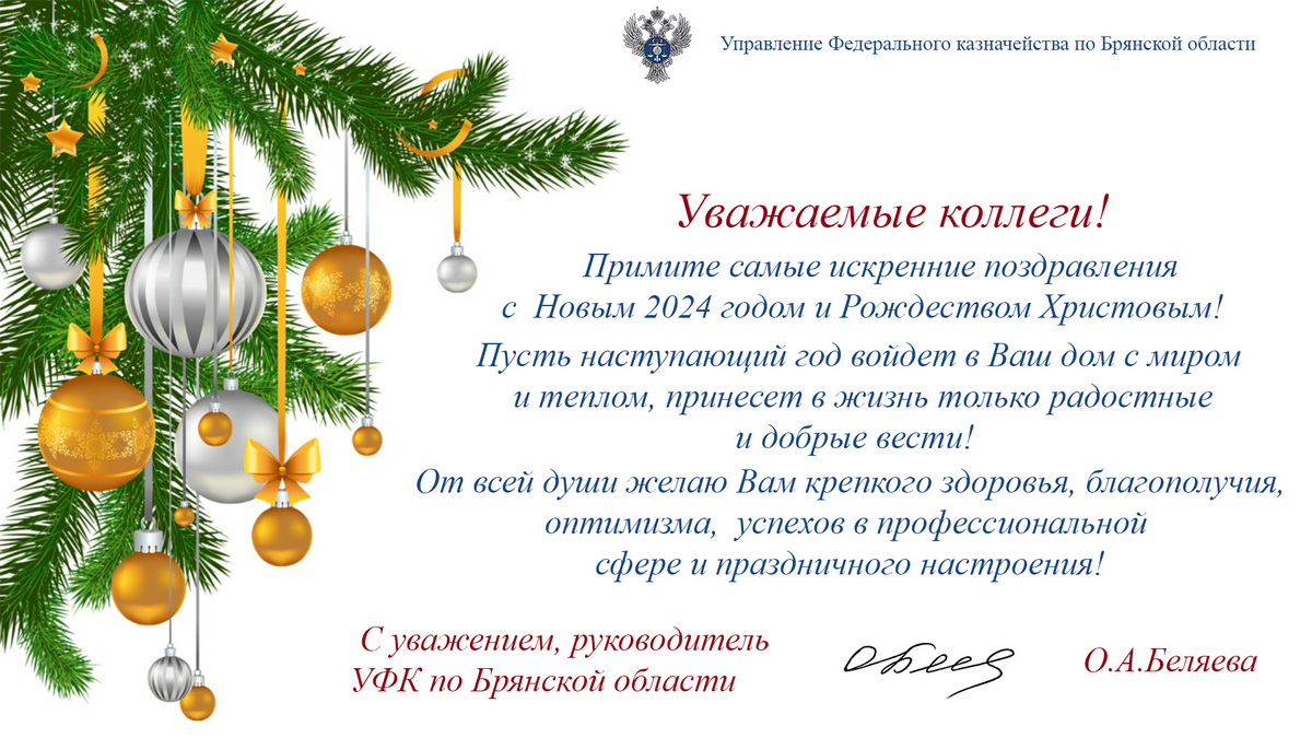 Поздравление руководителя Управления Оксаны Беляевой с Новым годом и Рождеством.