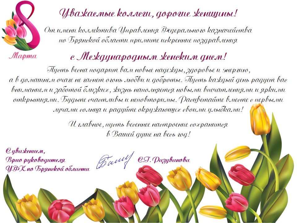 Поздравление врио руководителя Управления Светланы Разувановой с Международным женским днём!