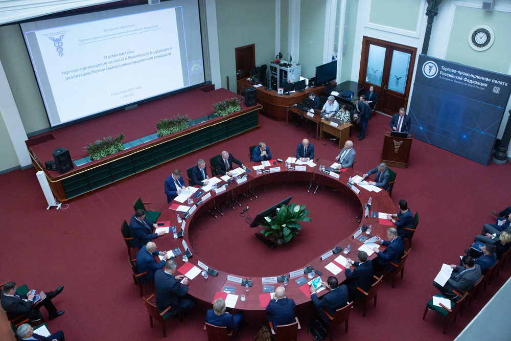 19 октября состоялось заседание Правления Торгово-промышленной палаты Российской Федерации, в котором приняли участие президент ТПП РФ Сергей Катырин, вице-президенты ТПП РФ Максим Фатеев, Владимир Падалко, Вадим Чубаров.