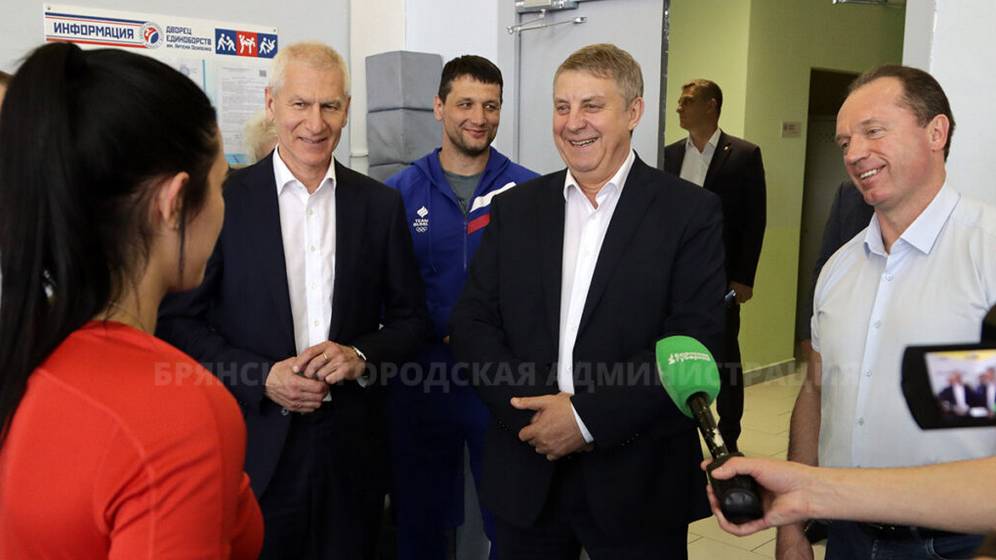 Советник председателя правительства России Олег Матыцин в сопровождении губернатора Александра Богомаза, главы областной думы Валентина Суббота и вице-мэра Сергея Антошина осмотрел спортивные сооружения в Брянске.