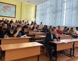 Перед студентами выступил Евгений Потоцкий, инспектор отделения иммиграционного контроля. Речь шла об изменениях в законодательстве РФ относительно правонарушений. Были разъяснены статьи уголовного кодекса РФ, связанные с террористической деятельностью граждан.