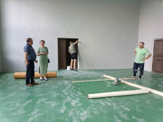 Строится малая спортплощадка в селе Нивное Суражского района. Сейчас рабочие уже заасфальтировали участок под нее, установили бордюры и начали монтаж спортивного оборудования.