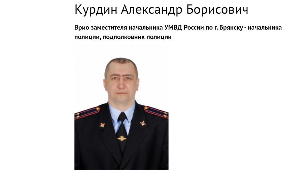 На странице, где раньше был указан полковник полиции Юрий Соколов, возглавлявший оперативное подразделение УМВД России по Брянску, появился подполковник полиции Александр Курдин . Александр Борисович значится временно исполняющим обязанности аместителя начальника УМВД — начальника полиции. Ранее Курдин был замом начальника полиции по охране общественного порядка.