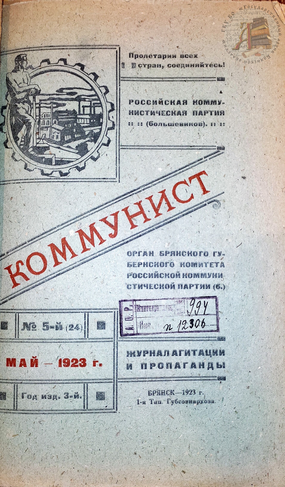 Журнал « Коммунист » – орган Брянского губернского комитета РКП(б).