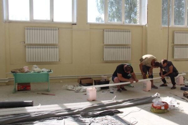 В настоящее время специалисты занимаются монтажом системы отопления. Остается постелить спортивный линолеум и закрепить мягкие панели.На обновление спортзала направлено 1,9 млн рублей.