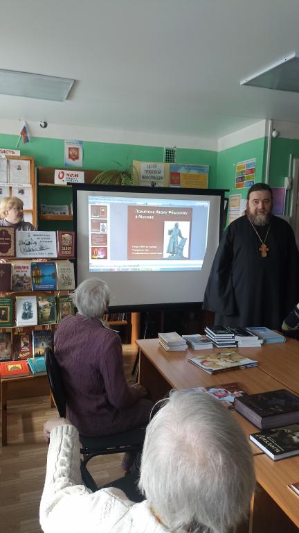 10 марта 2023 года в Глинищевской поселенческой библиотеке административного центра Брянского района работники библиотеки подготовили презентацию по истории православной книги, о появлении на Руси первой печатной книги и познакомили с православными книгами, имеющимися в фонде библиотеки. В мероприятии принял участие иерей Михаил Макухин, настоятель храма Покрова Пресвятой Богородицы с. Глинищево. К мероприятию была оформлена выставка литературы "Живое слово мудрости духовной".