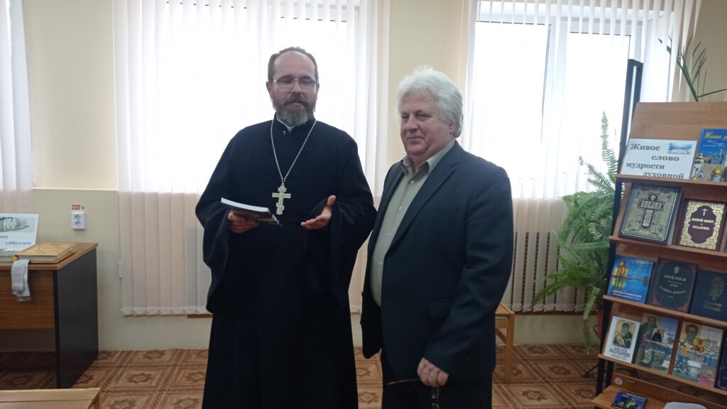 На мероприятии присутствовал настоятель храма во имя Георгия Победоносца п. Десятуха иерей Сергий Тормышев, который рассказал гостям, что же включает в себя понятие «православная литература», чем она отличается от литературы вообще, и какое место в чтении современного человека должна занимать православная книга. Ведущая познакомила присутствующих с православными книгами из фонда центральной библиотеки. Прозвучали стихотворения по данной теме в исполнении членов ЛЭО «Глаголъ» Владимира Подоляко, Натальи Романовой, Оксаны Кимуржи.