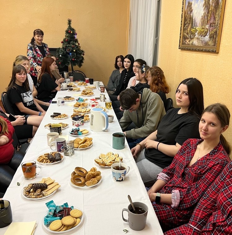 В общежитии №1 БГАУ жизнь кипит, как и положено в молодежном коллективе. Студентки факультета СПО вместе со своим воспитателем Гайдаровой Ириной Александровной без устали организовывают мероприятия с целью сдружить коллектив и узнавать больше нового. Так, 12 января, в преддверье старого нового года, провели очередной вечер отдыха «Святки-колядки». Как и положено в святочные дни, многие девочки пришли на праздник ряжеными, исполняли простые забавные песни о небесных светилах, рождении Христа. Были тут заяц, лиса, белки, петух, разбойник, человек-паук и другие персонажи. С задором и весельем разыгрывали маленькие спектакли, из длинных лент плели красивые косички, отгадывали загадки и активно участвовали в играх «уши замерзли», «снежки», «лыжные гонки», «луноход» и т.д.