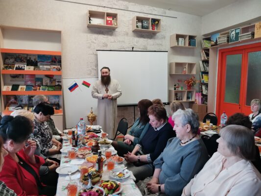 Настоятель храма во имя преподобного Серафима Саровского в п. Мичуринский иерей Алексий Дзебисов накануне праздника Благовещение Пресвятой Богородицы посетил занятие Университета третьего возраста,