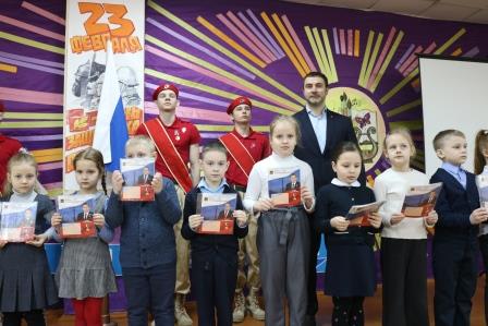 Сегодня, 20 февраля, в канун Дня защитника Отечества на школьной линейке первоклассникам гимназии №1 п.Навля вручили тетради с портретами Героев РФ.