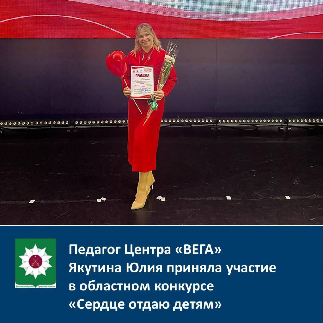 Педагог Центра «ВЕГА» Якутина Юлия приняла участие в областном конкурсе «Сердце отдаю детям»