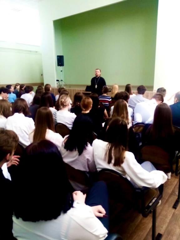 26 апреля 2023 года иерей Алексий Иванов в актовом зале средней общеобразовательной школы № 67 города Брянска провел лекцию-беседу на тему необходимости возрождения духовно-нравственных ценностей.