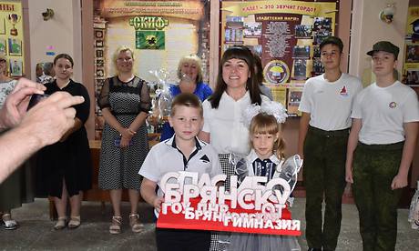 В гимназии делегацию из Брянска встретили дети, родители и учителя, и преподнесли очень трогательный подарок, сделанный своими руками. Просили передать его жителям Брянской области. Поделка обязательно будет передана в музей!