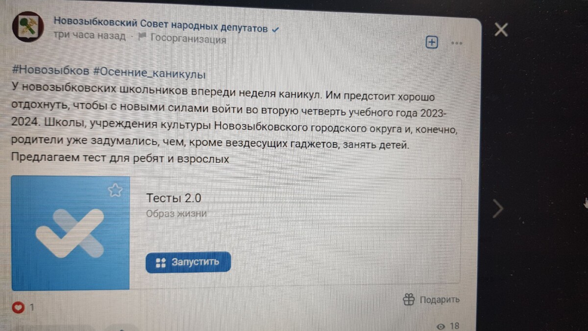 Удивили. Вместо программы развлечений на каникулярное время, орган представительной власти Новозыбкова опубликовал ссылку на задания для ребят и взрослых.