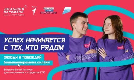 Регистрация участников Всероссийского конкурса «Большая перемена» открыта на платформе https://bolshayaperemena.online/?utm_source=region&utm_medium=bryansk до 15 мая 2023 года.