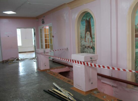 Подрядчиком выступила организация ООО «ТК Пересвет». Специалисты в настоящее время выполняют демонтажные работы. Затем будет заменена кровля и будет проводиться косметический ремонт помещения с заменой системы отопления.