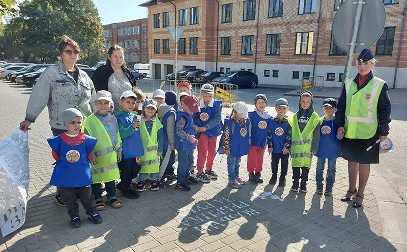 Сотрудники Госавтоинспекции совместно с дошколятами детского сада № 20 «Теремок» провели акцию «Возьми ребенка за руку».