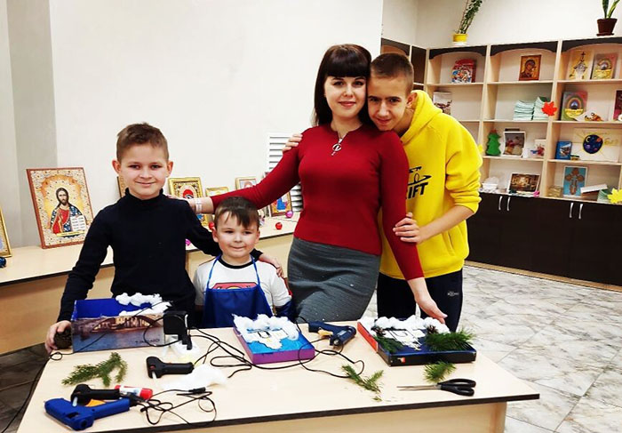 «Для изготовления поделки нашим воспитанникам понадобились: крышка от коробки, ножницы, клеевой пистолет, шишки, веточки елки или сосны, распечатанный эскиз храма, гуашь или акварель, вата, ватные диски. С большой любовью и энтузиазмом наши воспитанники выполняли данную работу, а после занятия счастливые ребята подарили поделки своим родителям», – рассказала преподаватель кружка, педагог воскресной школы Мария Лобач.