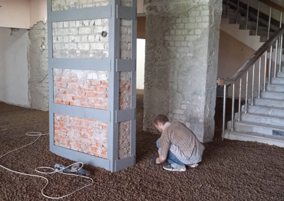 Директор школы Евгения Жадовец сообщила, что завершена заливка пола на третьем этаже. В здании укрепили несущие конструкции, стены и колонны, смонтированы коммуникации, в кабинетах ведется покраска стен.