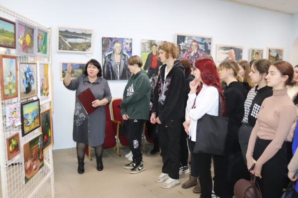 Возможностью приобщиться к прекрасному, используя Пушкинскую карту, сегодня не преминули воспользоваться студенты сразу трех трубчевских ссузов: профессионально-педагогического колледжа, политехнического техникума и аграрного колледжа. Ребята первого и третьего курсов вместе со своими кураторами с удовольствием рассматривали представленные на выставке работы выпускников класса масляной живописи разных лет: А. С. Каширской, В. П. Линцевской, А. В. Шкуратовой, Н. А. Филимоненковой , Е. Н. Гапоновой, Л. И. Демьяновой, Т. И. Писаревой, Д. А. Кривошеевой, С. М. Мартыновой, о творческом пути о об особенностях манеры живописи которых интересно и с теплотой рассказала гостям выставки преподаватель класса масляной живописи Л. Н. Солодкова.