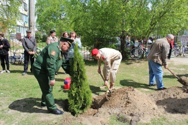 Право посадить туи было предоставлено родителям героев, а также учащимся-юнармейцам, учителям.