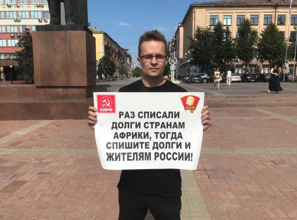Он вышел с плакатом на площадь Ленина. Надпись на плакате гласила: «Раз списали долги странам Африки, тогда спишите долги и жителям России!». По мнению Алексея, каждый житель нашей любимой страны России поддержит это требование.