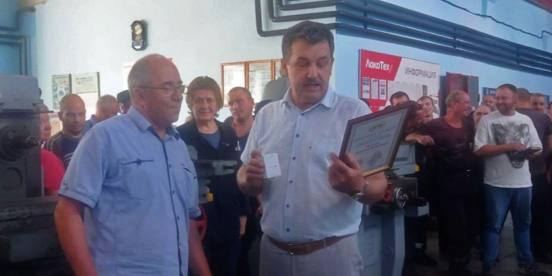Первый секретарь Брянского обкома КПРФ, депутат Брянской областной Думы Андрей Архицкий наградил Почётной грамотой рабочего локомотивного депо «Брянск II».