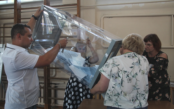Бюллетени с голосования вне помещения были переложены в сейф-пакет, который помещен в специальный сейф и находится под постоянной съемкой видеорегистратора. В завершении первого дня голосования бюллетени из стационарного ящика также были переложены в другой сейф-пакет, который был опечатан, на нем заверены подписи двух членов участковой избирательной комиссии. Также оставили свои подписи и наблюдатели. Сейф-пакет вместе с актом до завтра до 20.00, т.е. до подведения итогов голосования, будет находится под видеорегистратором.