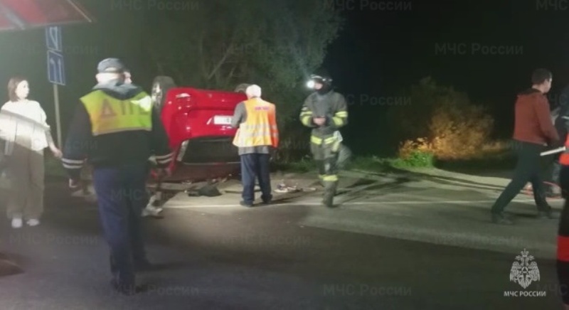 На фото видно, что одна из попавших в ДТП машин перевернулась. Спасателями проводились работы по деблокированию пассажиров из разбитых авто.