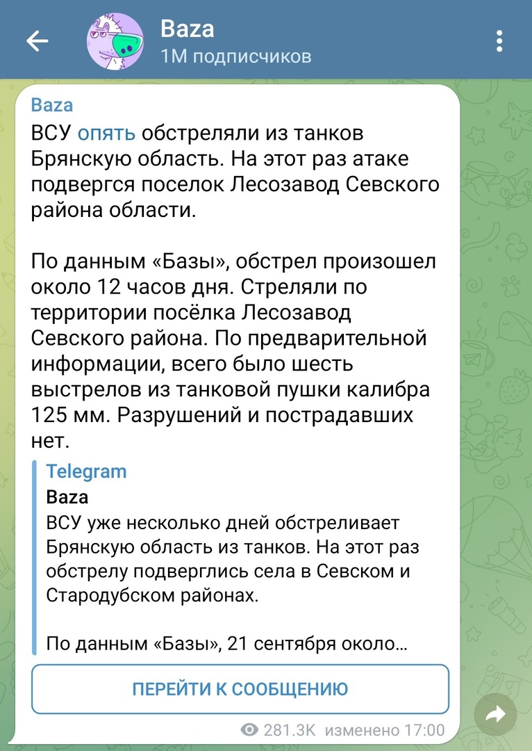 Ранее тот же канал писал о продолжающихся несколько дней подряд атаках на Брянскую область. Это неоднократные танковые и миномётные обстрелы приграничных сёл. Губернатор региона комментариев по поводу происходящего не давал.