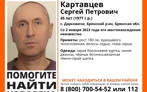 Сергей Петрович Картавцев пропал в селе Дарковичи Брянского района. 45-летний мужчина исчез ещё 2 января.