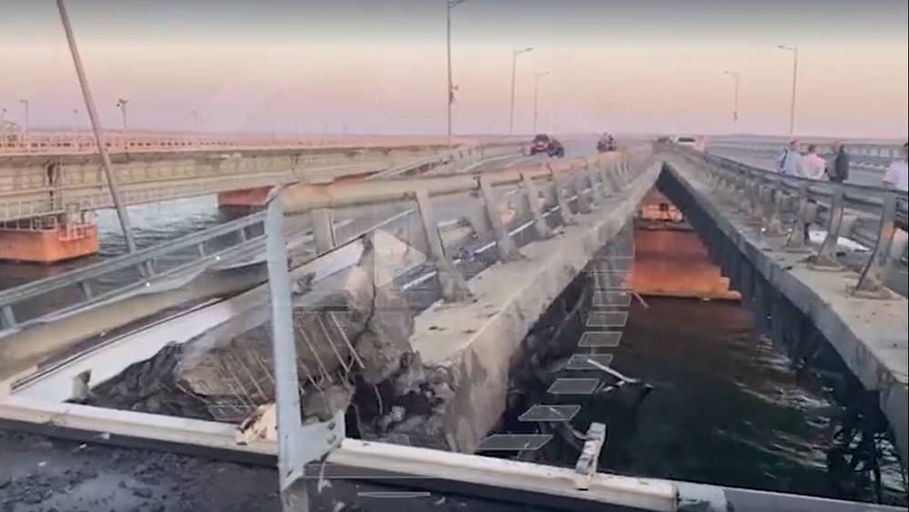«На Крымском мосту обвалился один из пролётов автодороги. Видно, что ж/д участок также поврежден. На это можно смотреть вечно!» — ликовало украинское официальное агентство, заблокированное в России..
