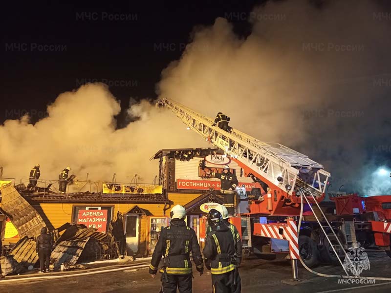 «На месте было установлено, что происходит горение в банно-гостиничном комплексе и в пристроенном к нему помещении автосервиса. Руководителем тушения пожара объявлен ранг пожара 1БИС, к месту пожара направлены шесть единиц основной техники». По прибытию дежурной смены службы пожаротушения Главного управления ранг пожара повышен до второго, в ходе проведённой разведки площадь пожара —1600 кв. м» , — сообщили в МЧС.