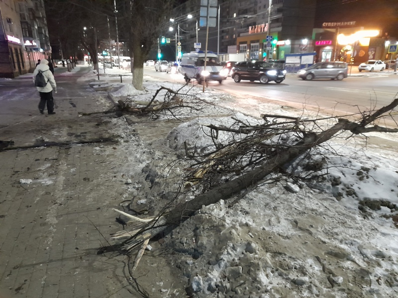 Легковой автомобиль снёс дерево на оживлённой улице в Брянске