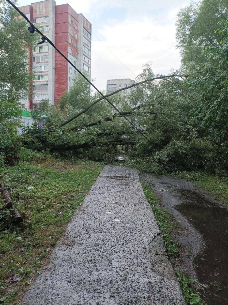 Последствие непогоды местные жители лицезрели на улице Вяземского. Неподалеку от продуктового магазина там рухнуло дерево. По словам свидетелей, дерево оборвало линию электропередач, что привело к нарушению электроснабжения. Кадры с места падения дерева опубликовали в сообществе «ЧП и ДТП Брянск».