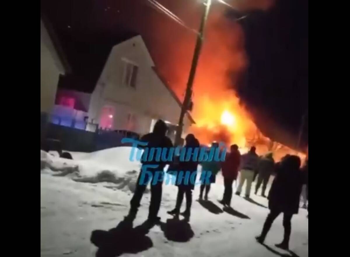Сильный пожар случился сегодня вечером, 5 марта, в Брянском районе Брянской области. Видео с места происшествия опубликовали в соцсети ВКонтакте в группе Типичный Брянск.