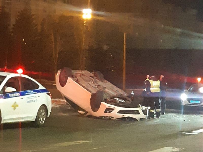 Полицейская погоня в центре Брянска завершилась переворотом автомобиля-нарушителя с молодыми людьми