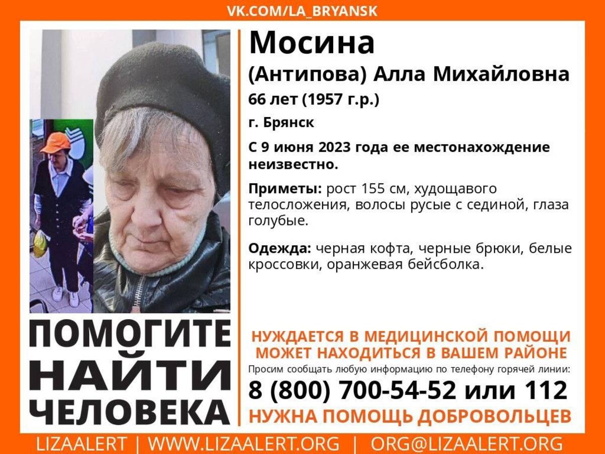 Мы уже рассказывали, что в Брянске без вести пропала 66-летняя Алла Мосина.