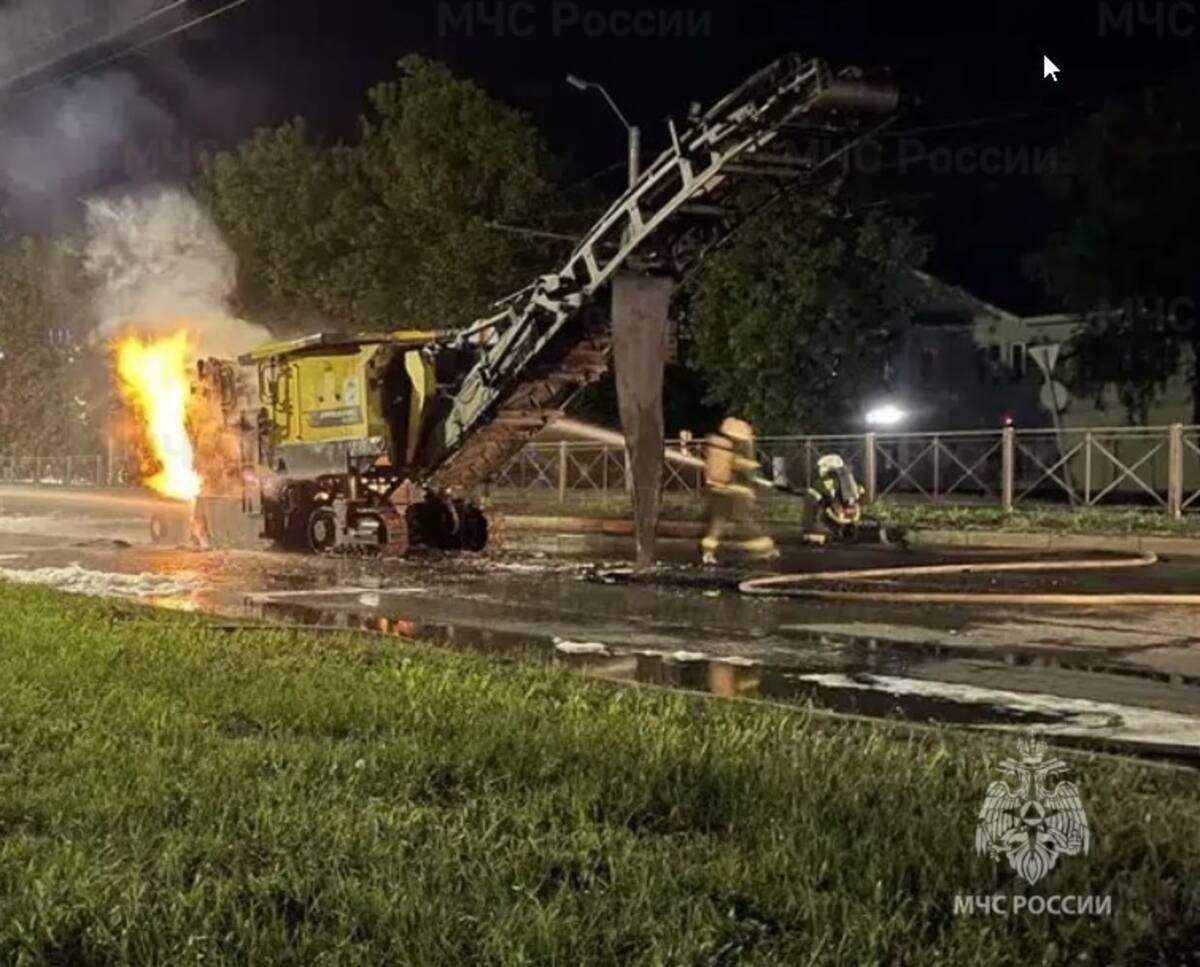 На дороге загорелась фрезеровальная машина. К тушению привлекались три пожарные автоцистерны.